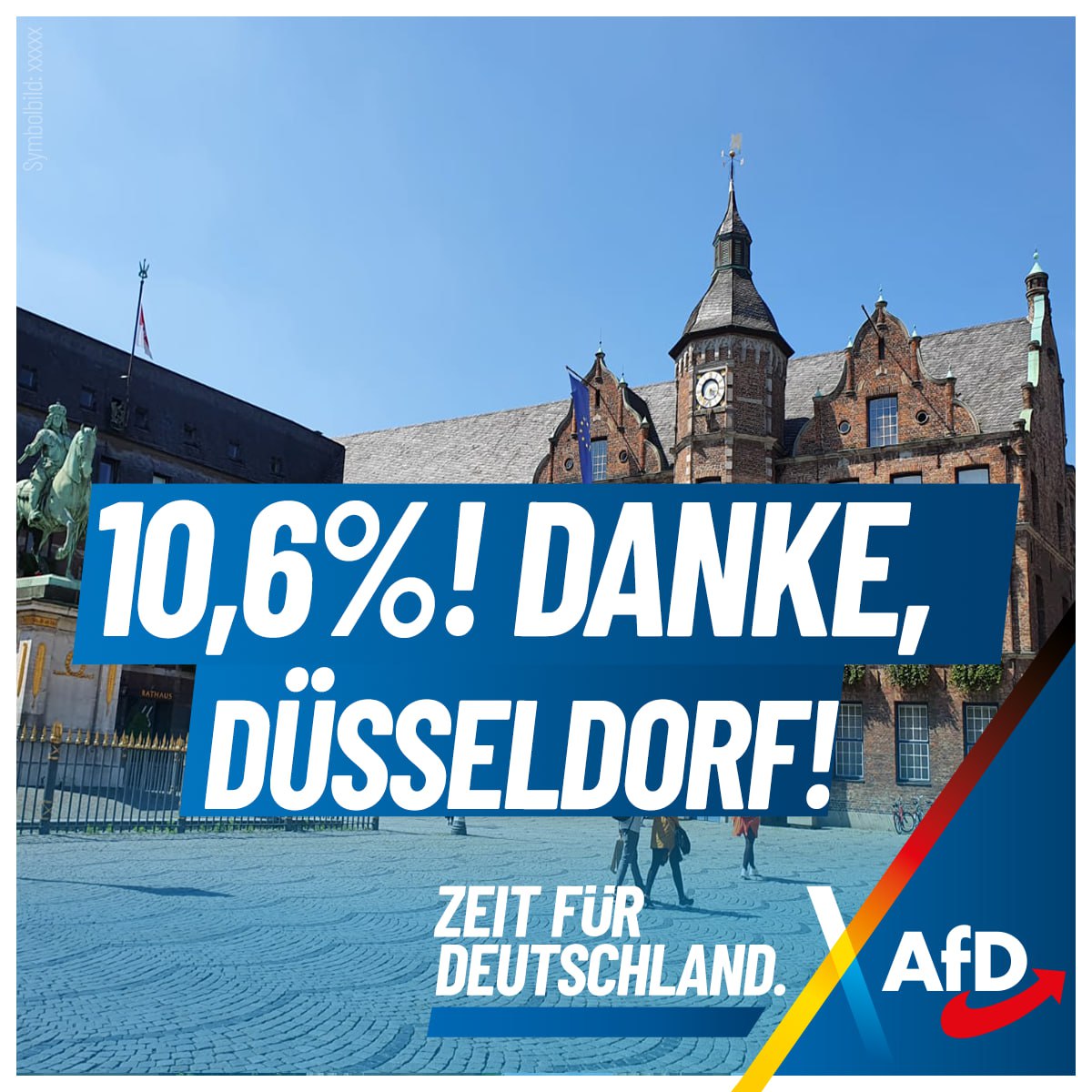 Die AfD Düsseldorf hat sich bei der gestrigen Kommunalwahl nahezu verdreifacht und 10,6 Prozent bei der Stadtratswahl erzielt. Neben 10 Ratsmandaten konnte die Partei gestern auch 25 Bezirksvertretungsmandate und einen Sitz im Integrationsrat erringen. In den kommenden fünf Jahren werden wir konstruktive, sachliche und bisweilen beinharte Politik im Sinne der Düsseldorfer Bürger und unserer Wähler leisten.